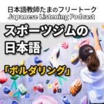 2026年1月22日 / 最終更新日時 : 2026年1月29日 tama PODCAST 129 スポーツジムの日本語「ボルダリング」|Japanese Used at the Gym: Bouldering|運動健身房的日語「抱石」 みなさん、こんにちは。「てくてく日本語」日本語教師のたまです。この番組は、日本語を勉強している人のためのポッドキャストです。日本の生活や文化、日本語のことについて、できるだけわかりやすい日本語でお話します。 ****** […]